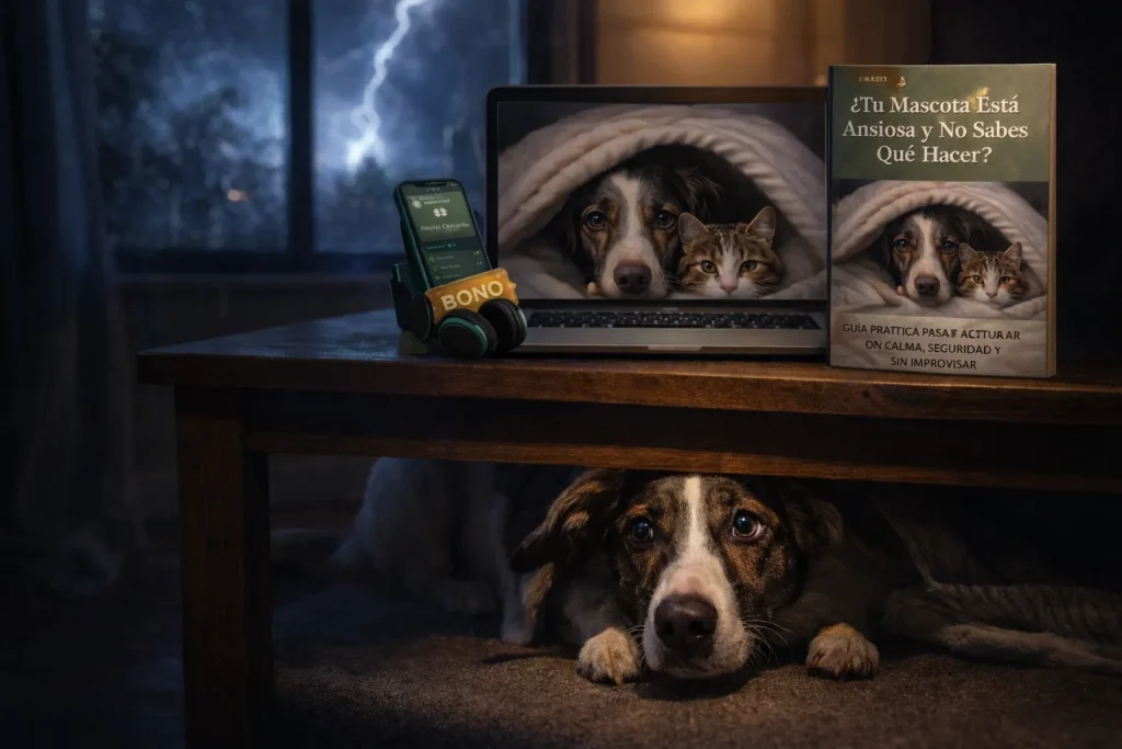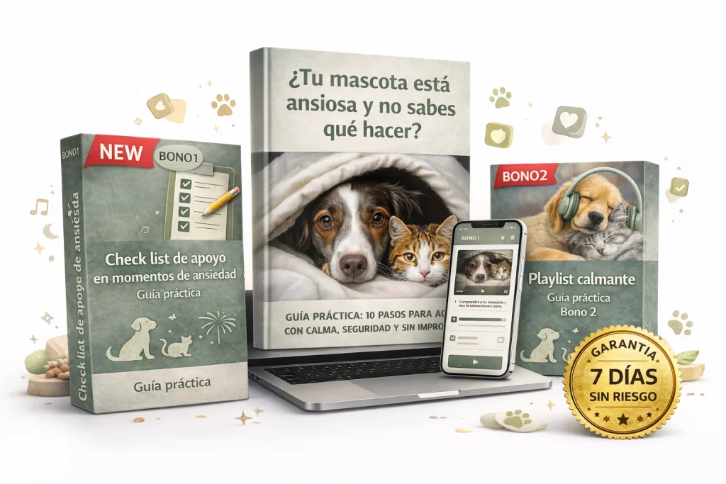 Al adquirirla hoy, obtienes acceso de por vida a un método claro y sencillo para saber exactamente cómo actuar cuando tu perro o gato se siente nervioso, asustado o inseguro, sin improvisar ni actuar desde el miedo. Esta guía nace para romper el ciclo de impotencia que viven muchos dueños de mascotas: verlas temblar, esconderse, jadear o alterarse sin saber cómo ayudarlas.